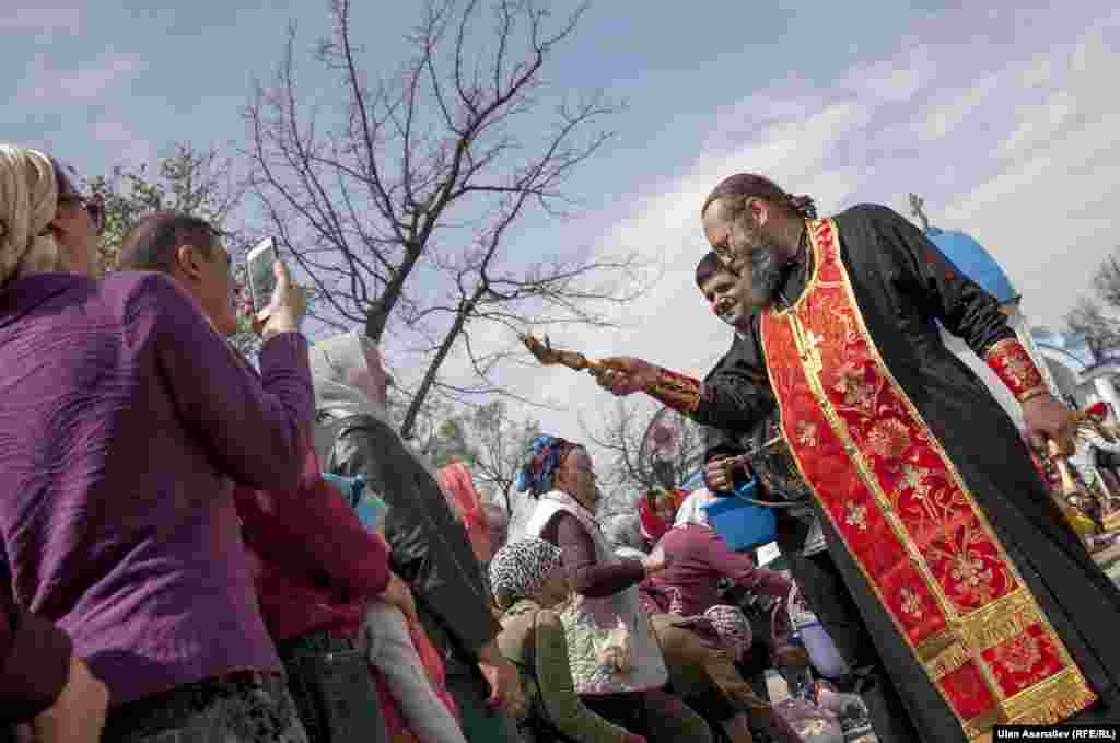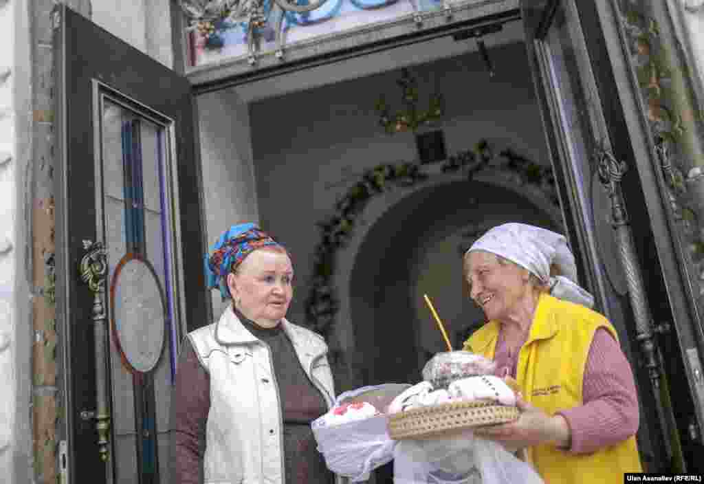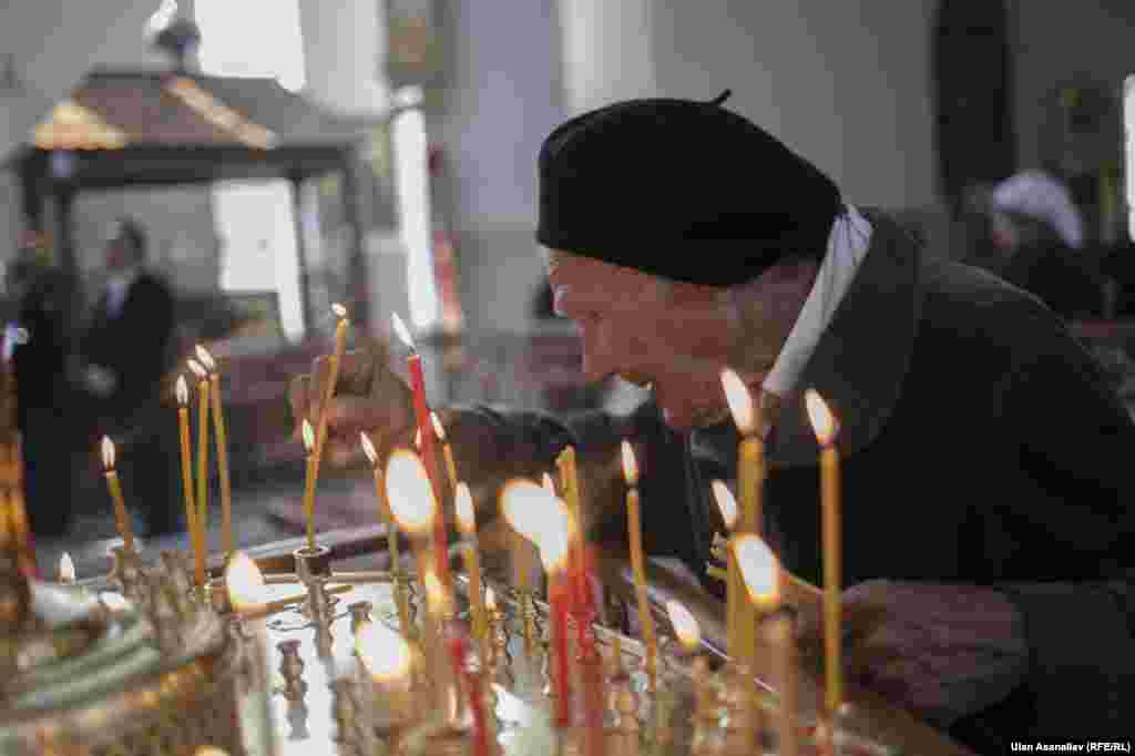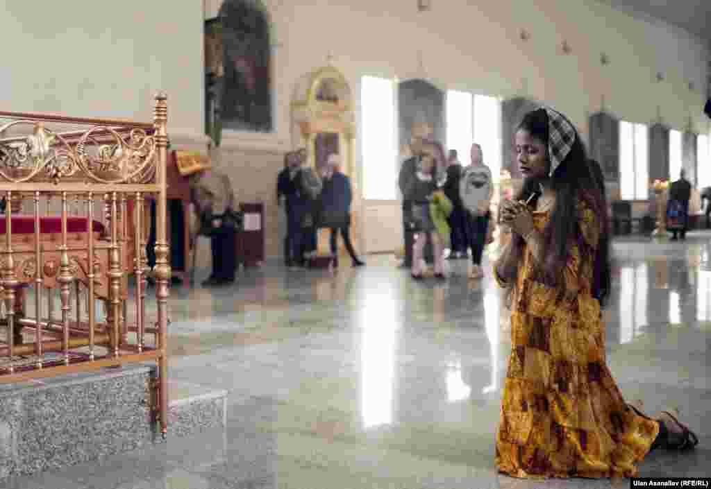 В этом году христиане - протестанты, католики и православные - отметили Пасху в один день. Фоторепортаж из Свято-Воскресенского собора в Бишкеке.