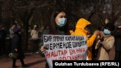 Участники мирного марша обращались к президенту, напоминая о его обещании посадить экс-зампреда таможни Райымбека Матраимова, говорили о коррупции и том, что будут с ней бороться.