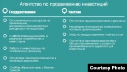 - увеличить финансирование АПИ из госбюджета - до $1-1,5 млн. в год, установить ключевые показатели эффективности перед правлением АПИ, провести обучение всех сотрудников через успешные АПИ зарубежных стран (Турция, Чехия и Германия) при поддержке Всемирного банка, в том числе тех, которые будут работать при дипломатических представительствах в указанных выше девяти странах.